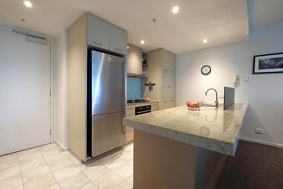 This apartment features a balcony, washing machine and toaster.